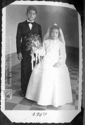 Los hermanos Carlos Tulio y Ofelia Duran , el día de su primera comunión