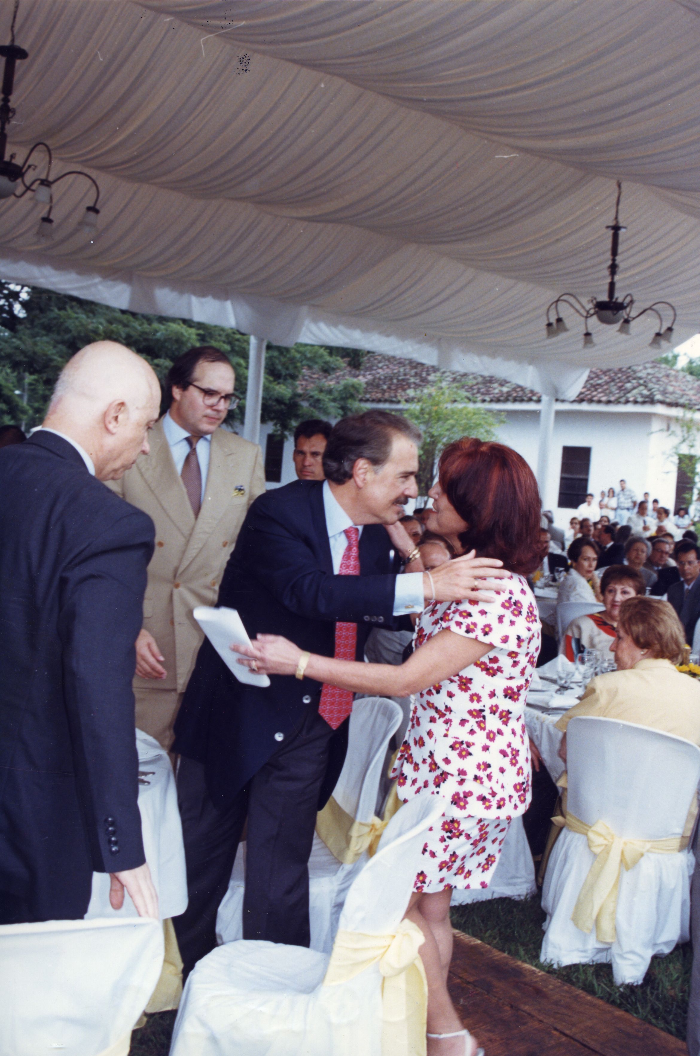 Visita del señor presidente Andrés Pastrana Arango al Ingenio San Carlos en la celebración de los 50 años. Se aprecia saludando mujer y observamos invitados al evento
