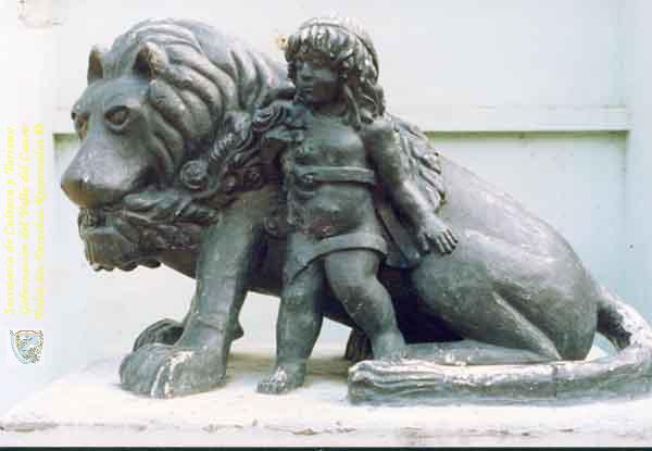 "El León y el Niño", Roldanillo, famoso desde 1925, está en el parque central. Fecha por identificar.