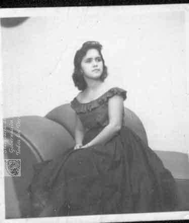 Señorita. Tuluá, C.1940. Se destaca la moda de usanza. La ficha no contiene información sobre el personaje.