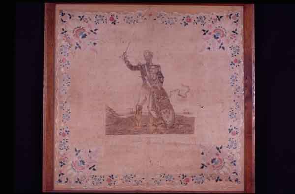 Pañuelo bordado alegórico al General Mosquera, elaborado por Gómez Bultrón en el siglo XIX