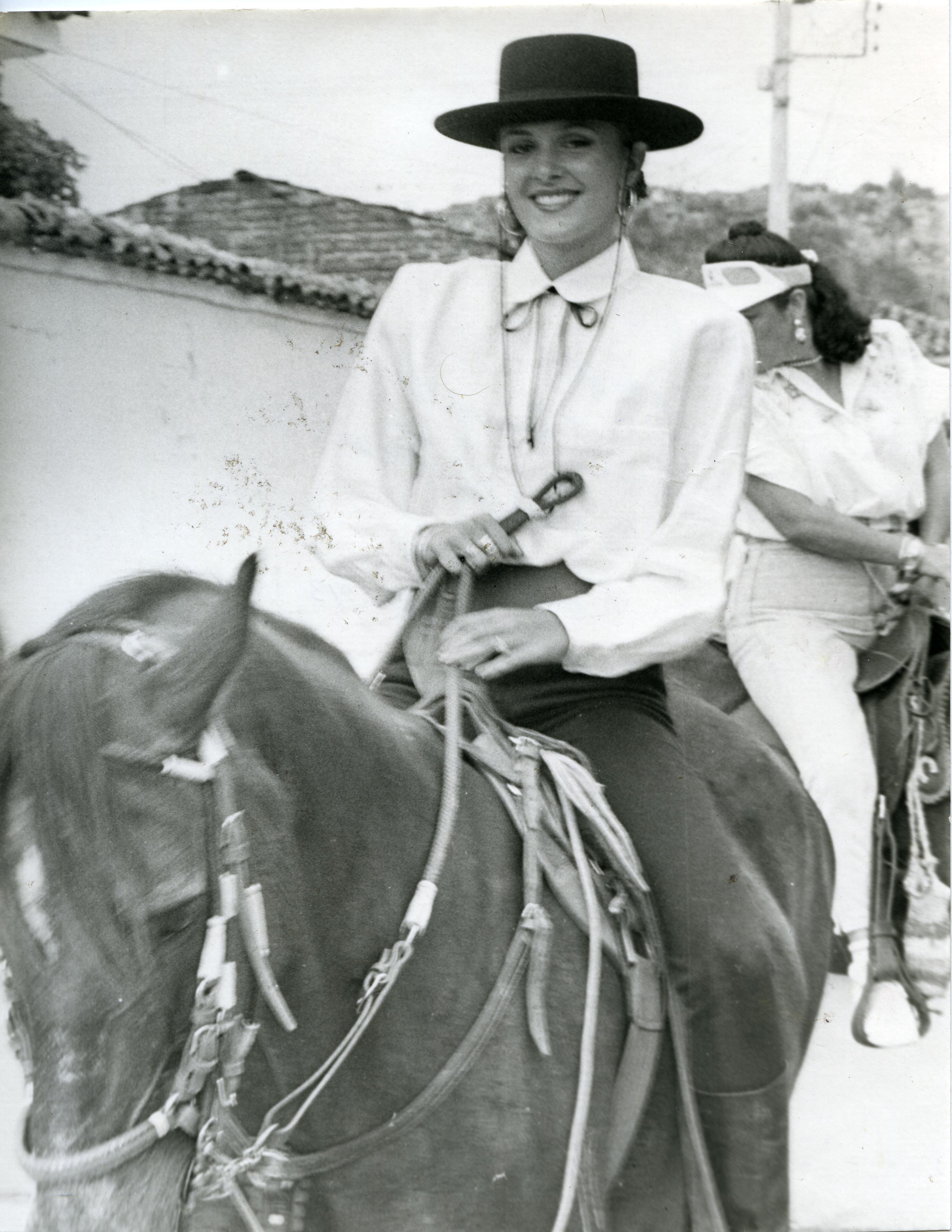 En la gráfica se observa a la Señorita Valle, Lina Fernanda Restrepo, vestida con traje de equitación y montando a caballo.