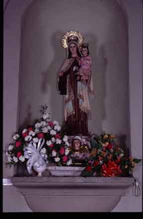 Imagen de butlo enmadera y tela de Nuestra Señora del Carmen. Iglesia de San Francisco. Cali, C. 1995
