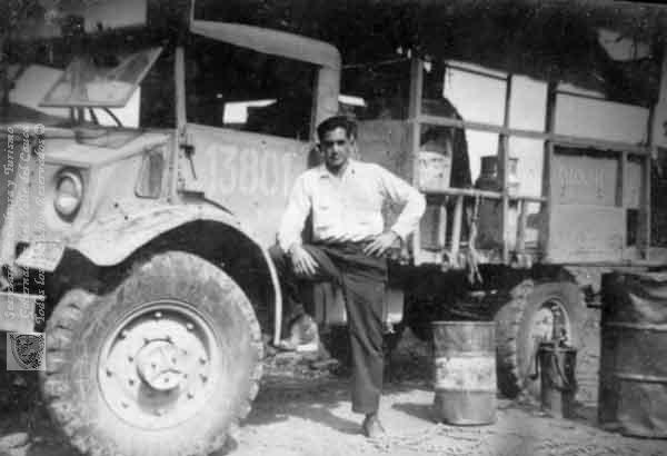 Trabajador de Nestlé con uno de los camiones que sirvió para construir la Carretera de la montaña. Bugalagrande, 1950.