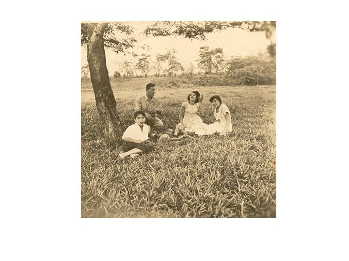 La familia Vives a orillas del río Cali. Santiago de Cali, 1950