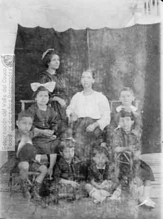Clemencia, Felicidad y Hermógenes (apellidos por identificar) e integrantes de la familia Córdoba Reyes por identificar