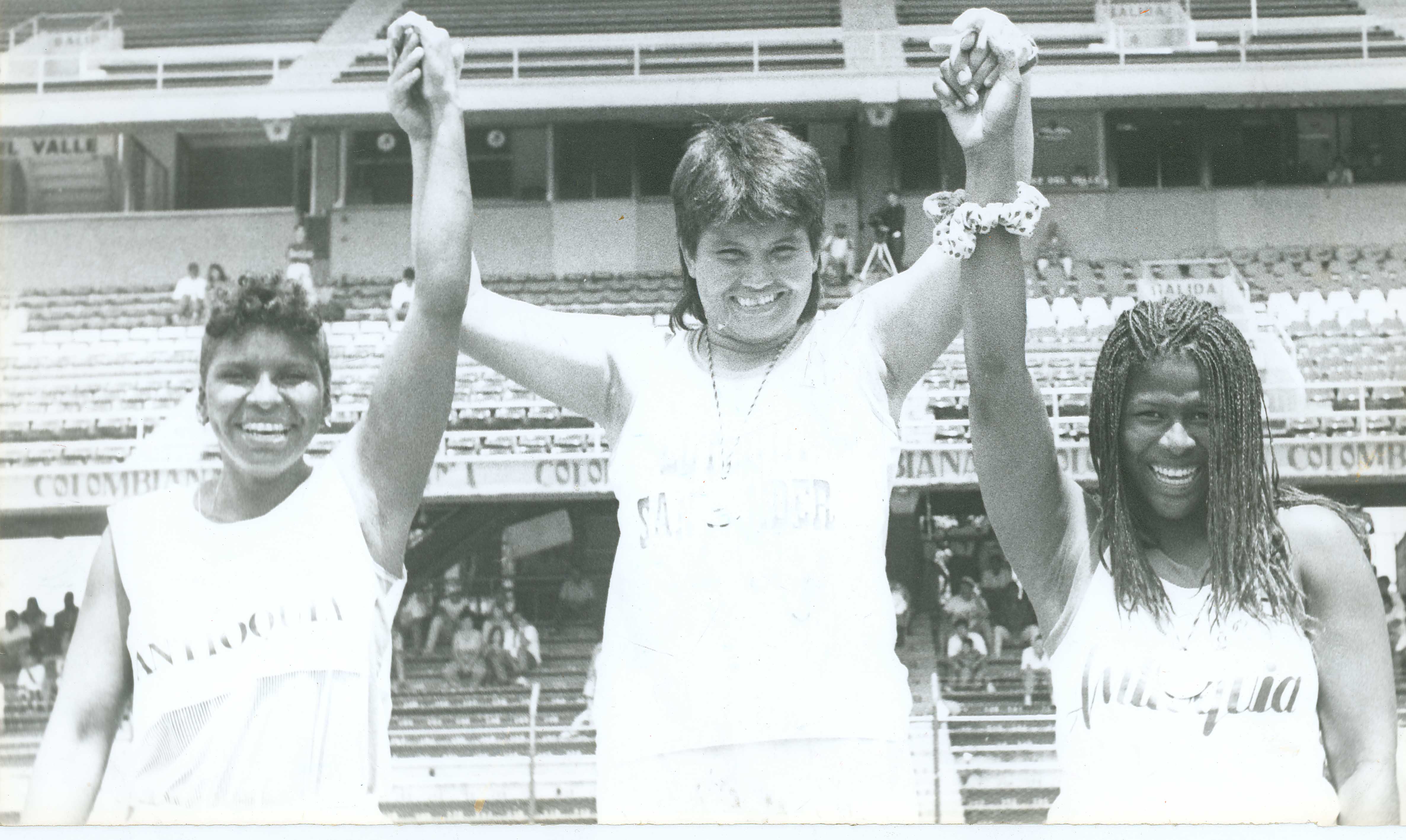 Nacional de atletismo, prueba del martillo ganadoras: María eugenia Villamizar (Santander), Yaiza Córdoba (Antioquia) t Zuleima Aramendiz (Antioquia). El Archivo del Patrimonio Fotográfico y Fílmico del Valle del Cauca es responsabilidad de la Biblioteca Departamental del Valle Jorge Garcés Borrero, por convenio de cooperación suscrito con la Secretaria del Cultura Departamental, con el fin de aunar esfuerzos para su conservación, preservación y divulgación del Archivo entre la comunidad Vallecaucana, especialmente entre los estudiantes e investigadores que visitan la Biblioteca, propiciando el su uso y consulta permanente. La universidad Icesi es un colaborador en el proceso de difusión, facilitando la tecnología que permite la consulta de las imágenes.