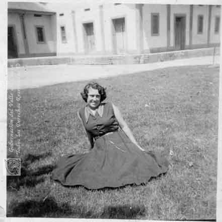 Señora de visita por la ciudad de Popayán, toma realizada en la Antigua Estación del Ferrocarril. Santiago de Cali. C, 1970.
