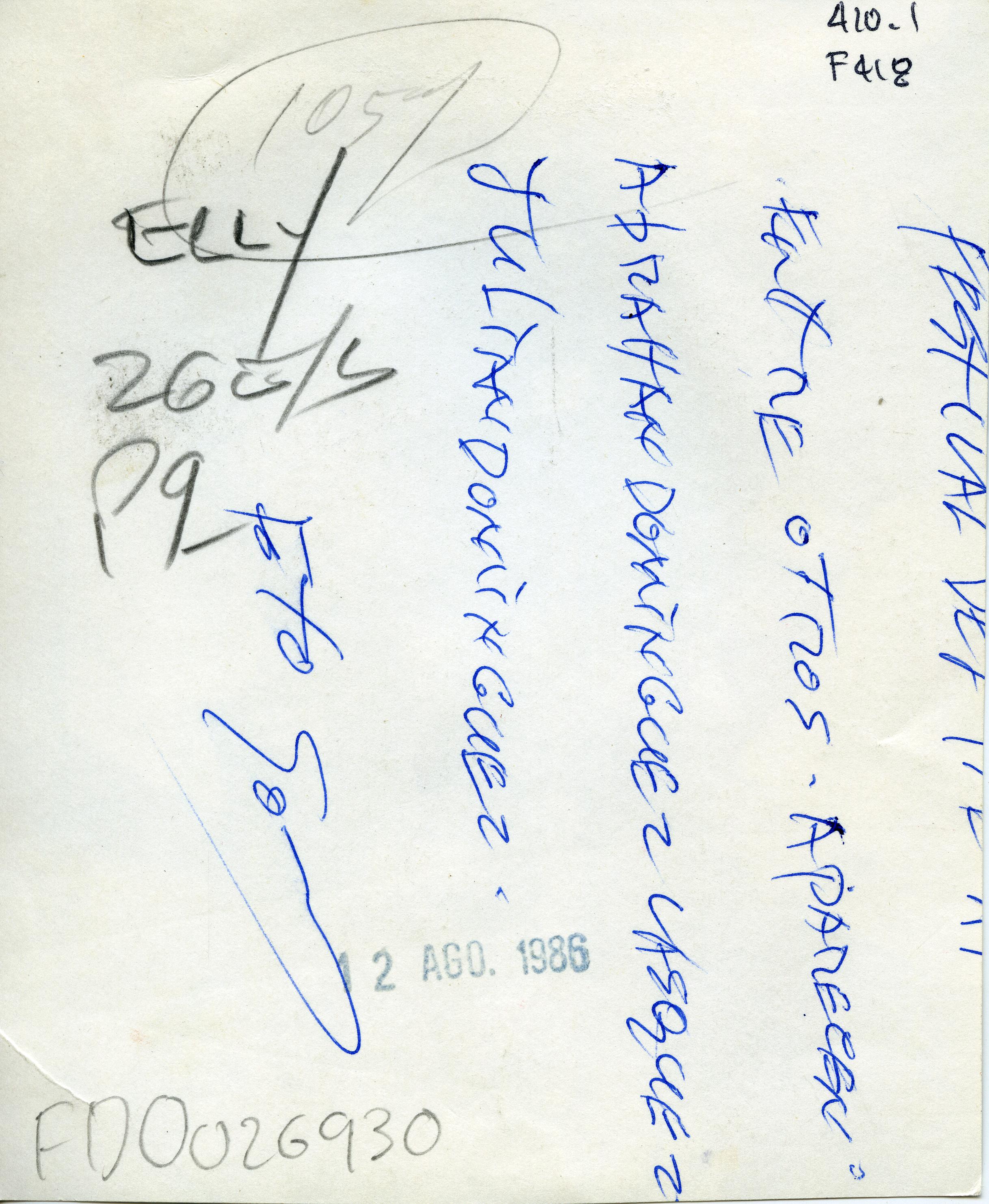 Manuscrito: Festival del Valle. Entre otros aparecen Abraham Domínguez Vasquez y Julián Domínguez.