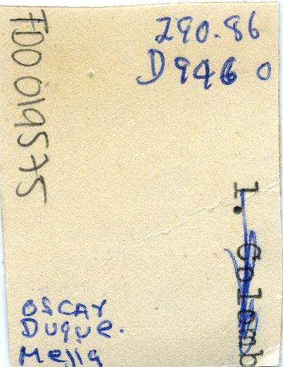Foto de Oscar Duque Mejia, se ve de saco y corbata, la fotografia muestra pliegues y mancha azul sobre el lado de la cabeza
