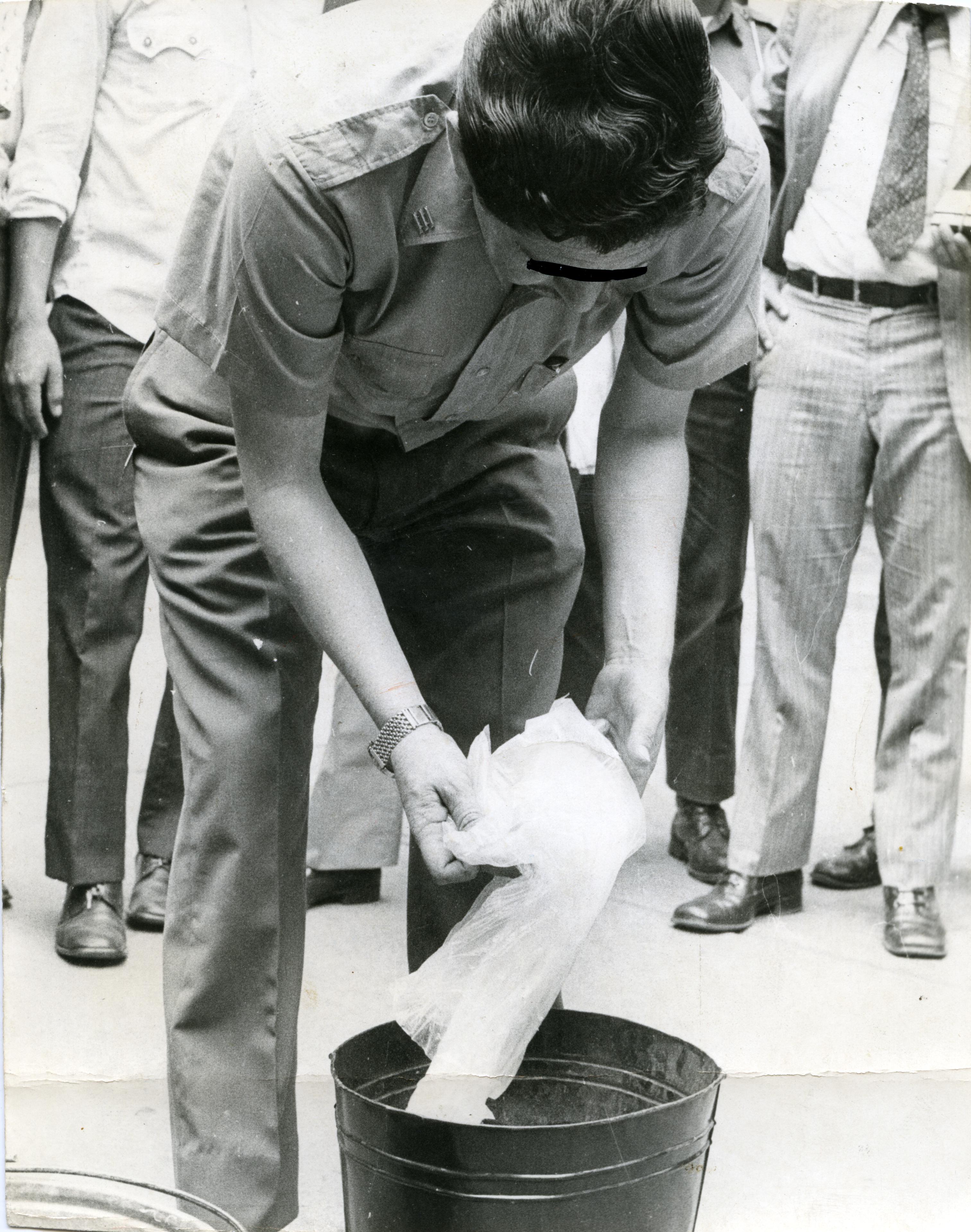 | dc.description.abstract | Reverso: La policía decomisó más de 23 kilogramos de cocaina y 353 kilos de marihuana durante los últimos días. En la gráfica aparece un oficial de la institución destruyendo el "veneno blanco". | spa |