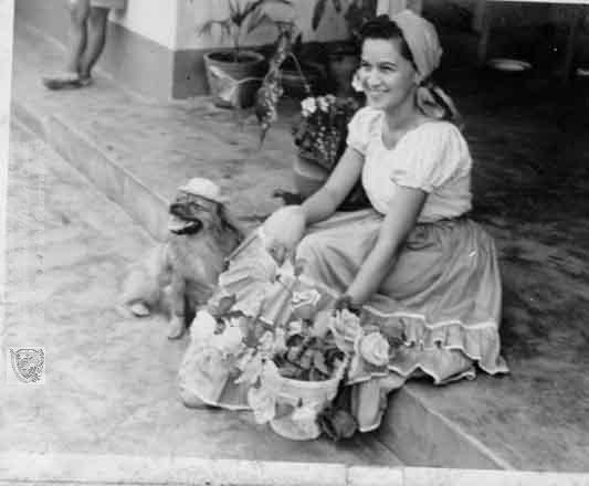 Maritza, vestida con traje folclórico del pacífico colombiano. 1956
