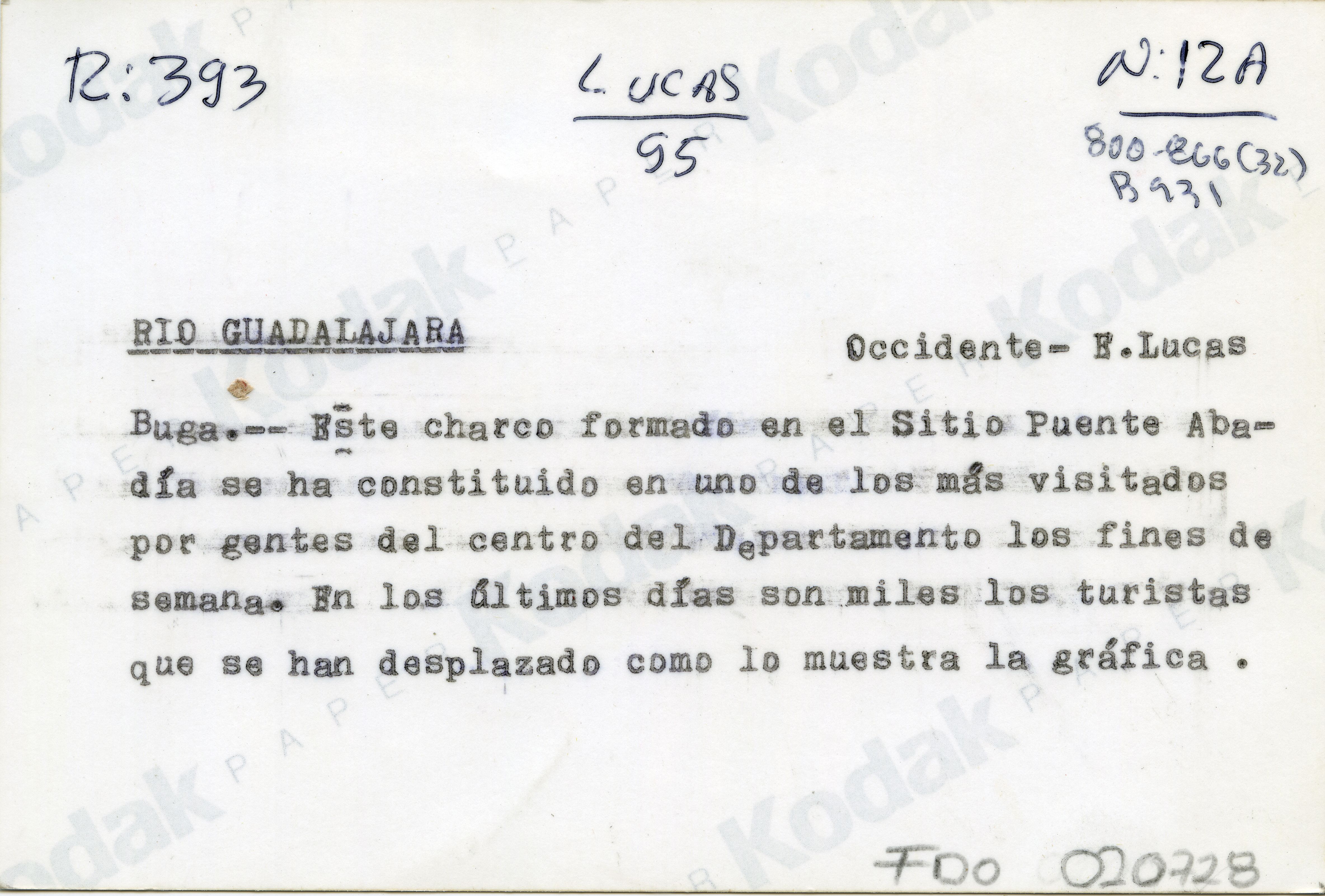 Río Guadalajara de buga. Este charco formado en el sitio Puente Abadía se ha constituido en uno de los más visitados por gentes del centro del departamento los fines de semana. En los últimos días son miles los turistas que se han desplazado como lo muestra la gráfica