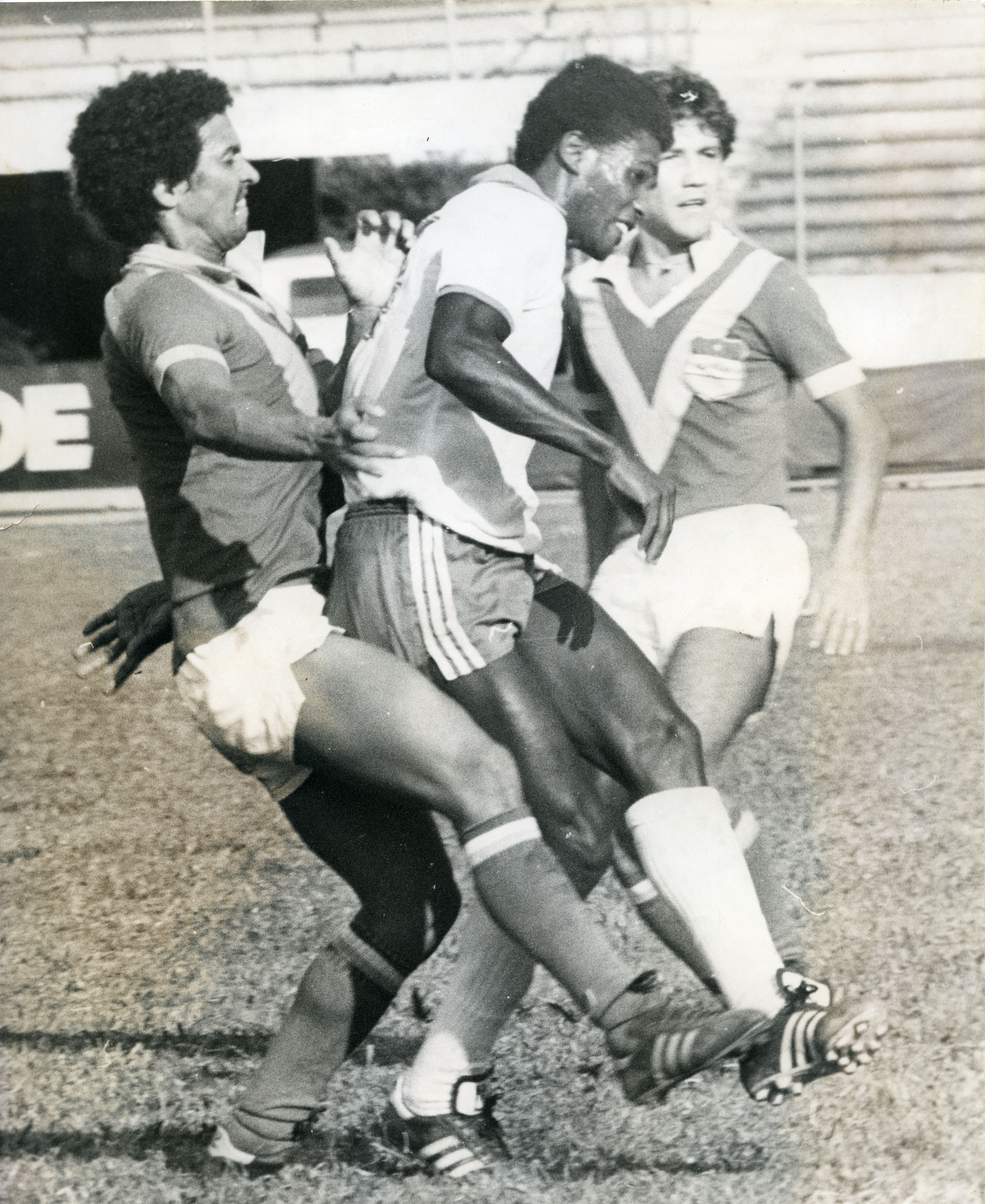 | dc.description.abstract | Deportivo Cali, club de fútbol colombiano del Valle del Cauca de la ciudad de Santiago de Cali, Sus inicios se remontan al 23 de noviembre de 1912 y posteriormente ha participado del fútbol profesional desde el año 1948 en donde ha obtenido 10 títulos como campeón del torneo colombiano al 2021, Campeón Copa Colombia 2010, Campeón Superliga de Colombia 2014, ha sido dos veces finalista de la Copa Libertadores de América. Partido entre los equipos de fútbol, Deportivo Cali y Quindío, realizado en el Estadio Olímpico Pascual Guerrero. El partido terminó 3-1 a favor del equipo caleño. Se aprecia jugador bernardo Redín disputando el balón con dos jugadores quindianos | spa |