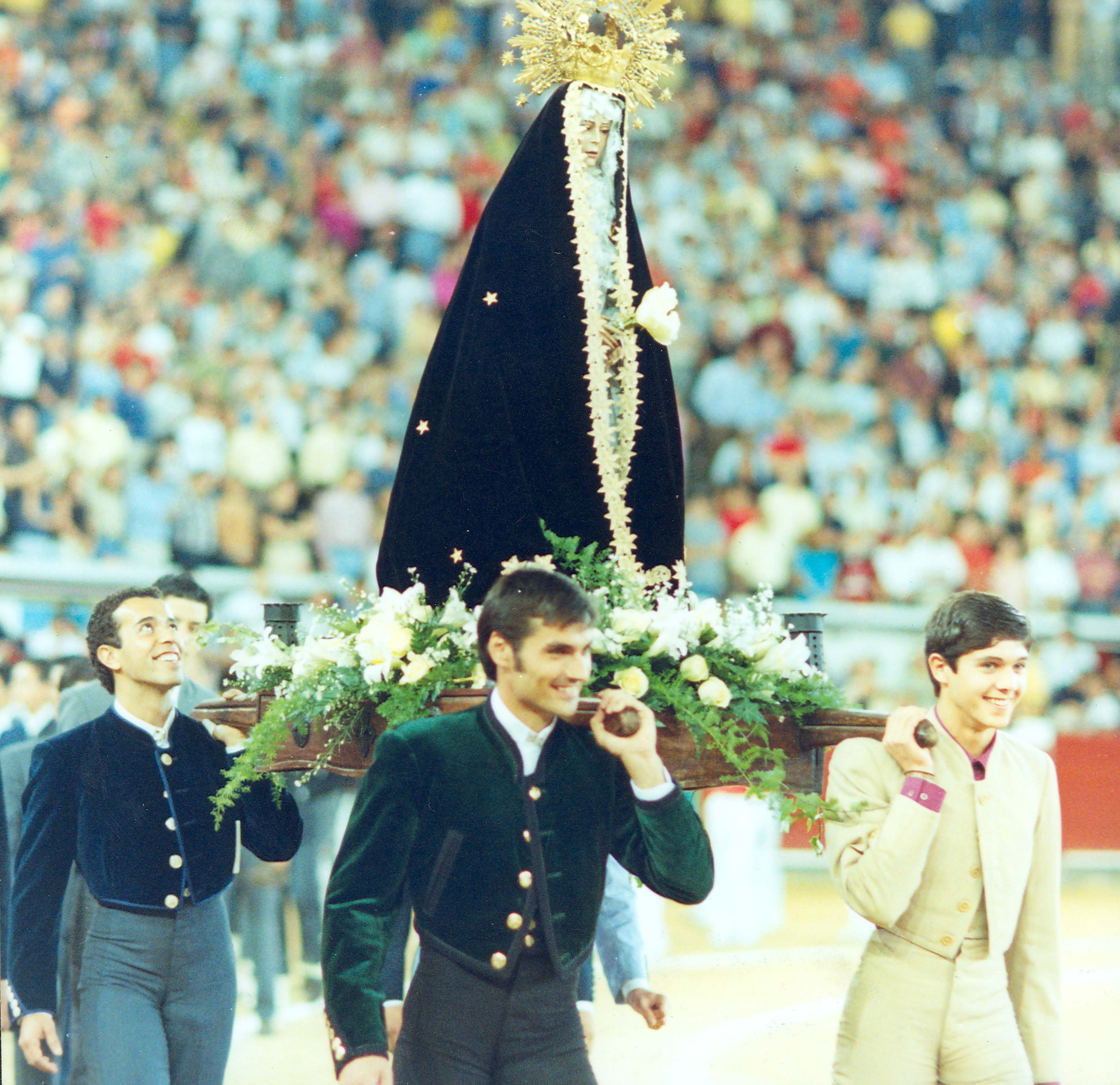 Este fue uno de los momentos bonitos e inolvidables en la Plaza de Toros Cañaveralejo. Los diestros y sus cuadrillas, que participaron en el Festival, desfilaron portando la Virgen de la Macarena, patrona de los ruedos. Los asistentes siguieron de pie el desfile. El Archivo del Patrimonio Fotográfico y Fílmico del Valle del Cauca es responsabilidad de la Biblioteca Departamental del Valle Jorge Garcés Borrero, por convenio de cooperación suscrito con la Secretaria del Cultura Departamental, con el fin de aunar esfuerzos para su conservación, preservación y divulgación del Archivo entre la comunidad Vallecaucana, especialmente entre los estudiantes e investigadores que visitan la Biblioteca, propiciando el su uso y consulta permanente. La universidad Icesi es un colaborador en el proceso de difusión, facilitando la tecnología que permite la consulta de las imágenes.