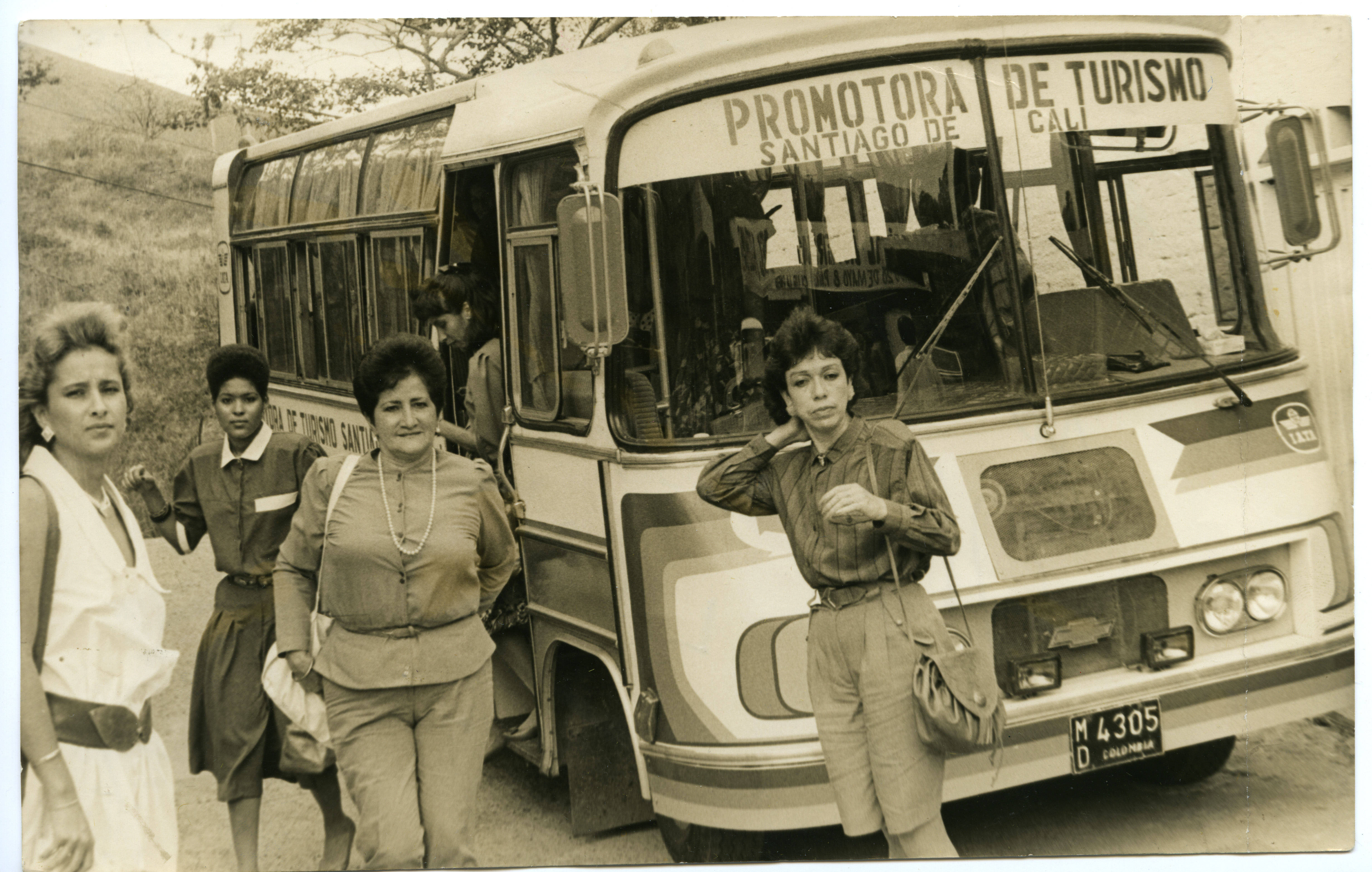 En el pie de foto dice lo siguiente: La Promotora de Turismo Santiago de Cali, se asoció a la conmemoración del día interamericano de las secretarias. Observamos en la fotografía de izquierda a derecha a Claudia Jaramillo, de Relaciones Tatiana Cortés, Alicia Espinosa, secretaria de dirección y Mercedes Montes, secretaria de ventas de este diario