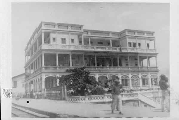 El Hotel Estación construído en 1928. Es un hotel 5 estrellas ubicado en la calle 2a No 1a - 08 en el primer puerto sobre el pacífico colombiano. Buenaventura. C.1960.