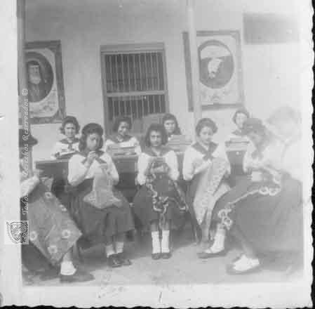 Estudiantes en clase de bordado. Convento de las Madres Carmelitas. Toro, C. 1920.