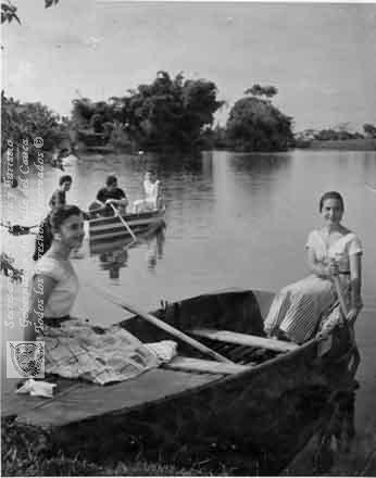 J.D. Barnell (1955). Fanny, Beatríz Castilla, Sonia Rengifo y Luz Carime Alhach, paseando en bote por el lago del Club Campestre & 400390. SANTIAGO DE CALI: Biblioteca Departamental Jorge Garces Borrero.