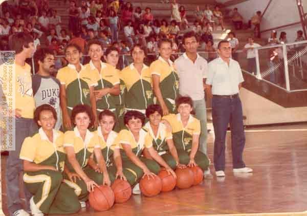 Equipo femenido de baloncesto que alcanzó medalla de Plata en los Juegos deportivos departamentales en Roldanillo en 1982.