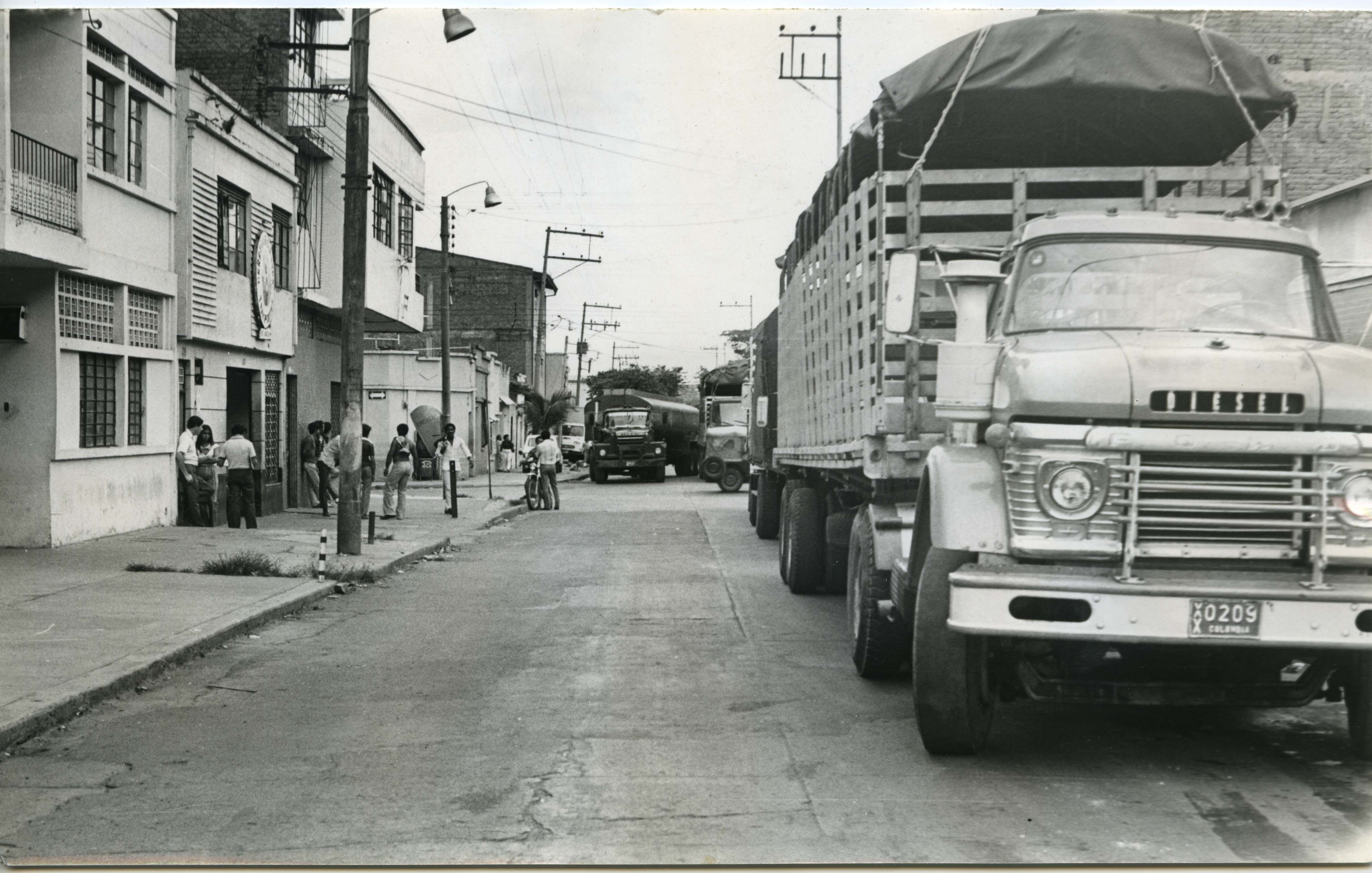 En el pie de foto dice lo siguiente: en el Barrio Jorge Isaacs tiene su sede buen número de empresas transportadoras, la cual ocasiona problemas a los residentes del sector. Santiago de Cali, Valle del Cauca. / El Archivo del Patrimonio Fotográfico y Fílmico del Valle del Cauca es responsabilidad de la Biblioteca Departamental del Valle Jorge Garcés Borrero, por convenio de cooperación suscrito con la Secretaria de Cultura Departamental, con el fin de aunar esfuerzos para su conservación, preservación y divulgación del Archivo entre la comunidad Vallecaucana, especialmente entre los estudiantes e investigadores que visitan la Biblioteca, propiciando el su uso y consulta permanente. La universidad Icesi es un colaborador en el proceso de difusión, facilitando la tecnología que permite la consulta de las imágenes.