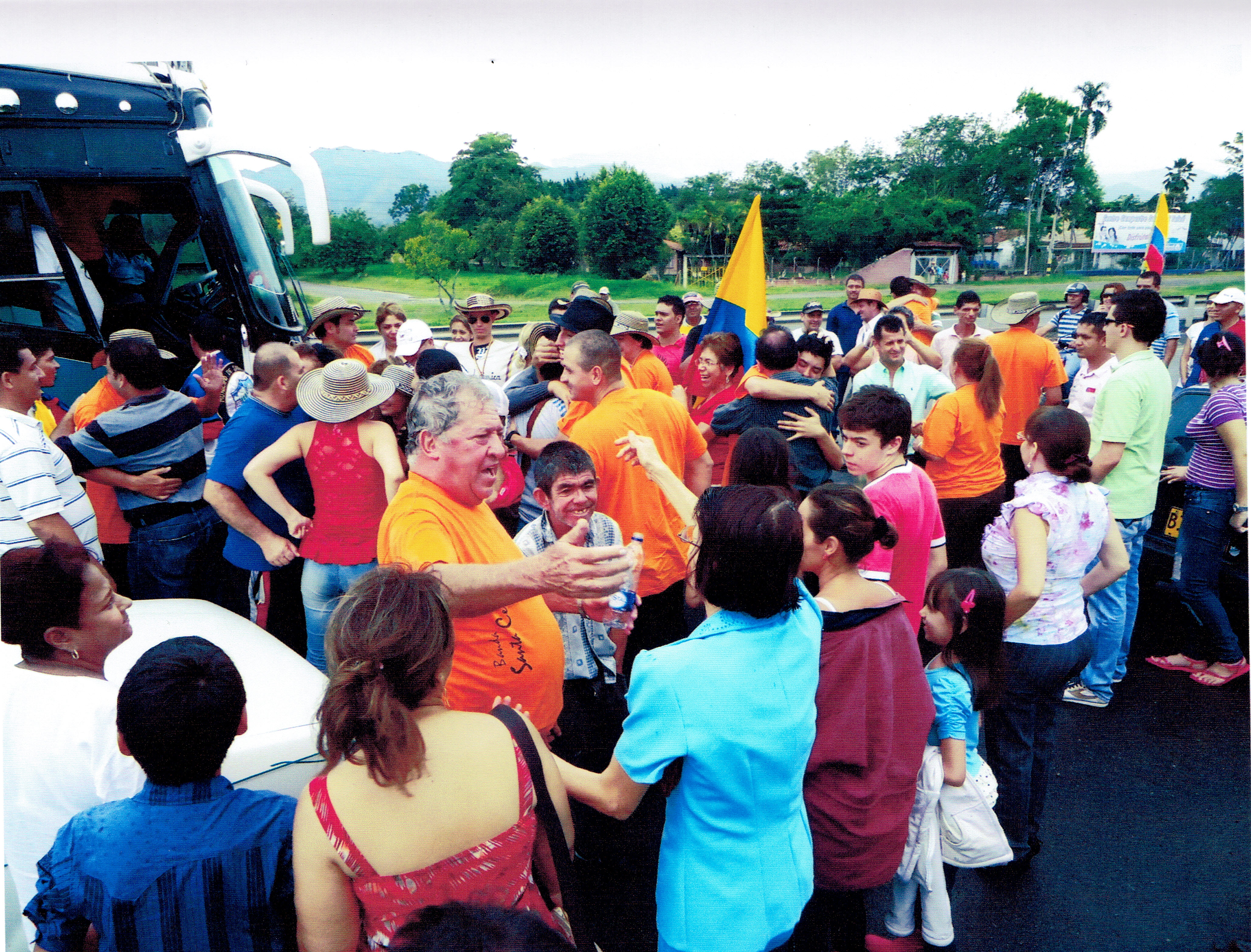 Recibimiento a al banda Santa Cecilia ganadora del concurso del concurso nacional de bandas Paipa Boyacá. Desfile esperando la delegación a la altura del puente Comfandi (Los Chancos).