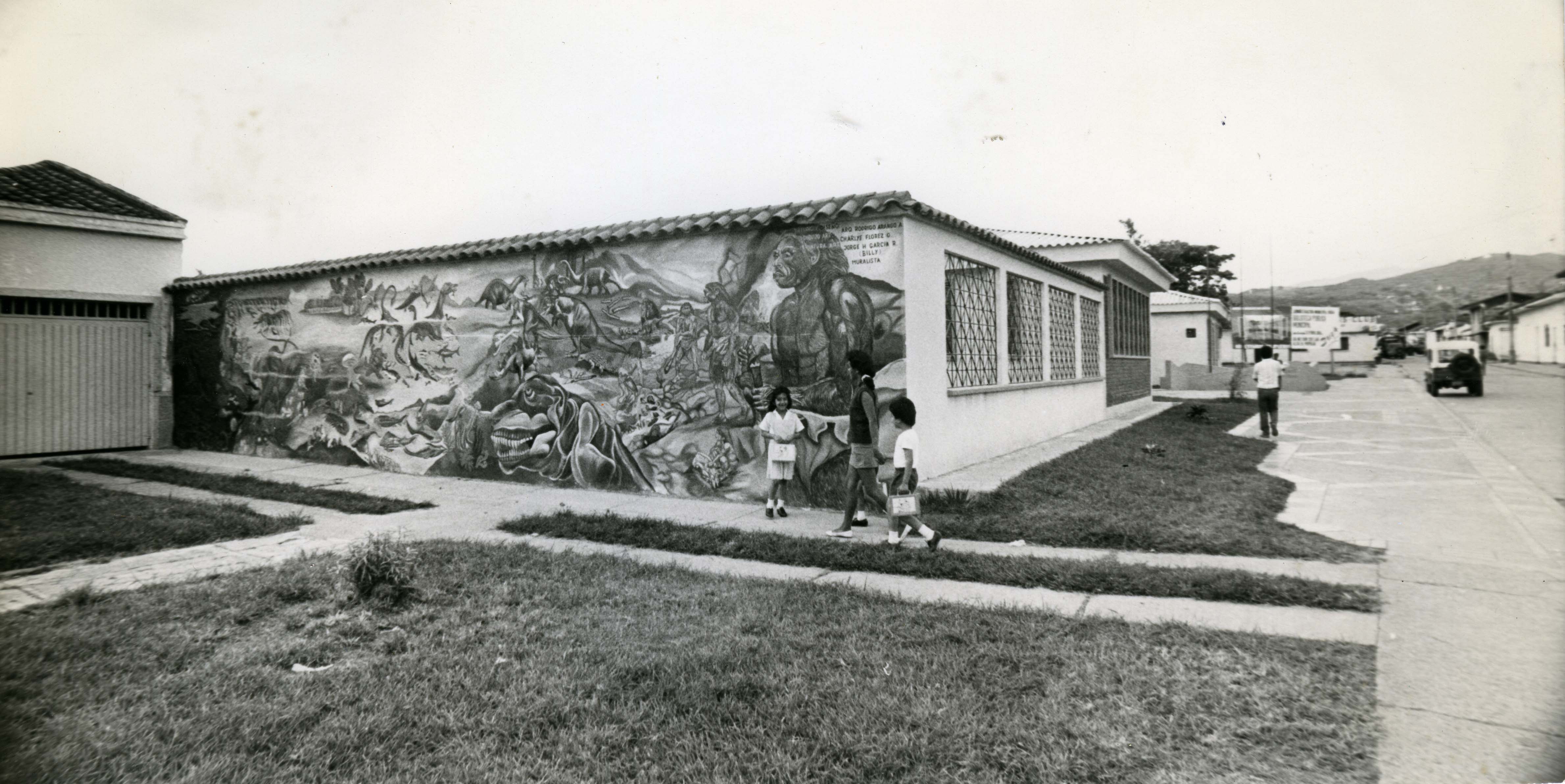 Biblioteca Municipal de Buga. Se puede apreciar las casas, personas, carro, y el entorno // El Archivo del Patrimonio Fotográfico y Fílmico del Valle del Cauca es responsabilidad de la Biblioteca Departamental del Valle Jorge Garcés Borrero, por convenio de cooperación suscrito con la Secretaria de Cultura Departamental, con el fin de aunar esfuerzos para su conservación, preservación y divulgación del Archivo entre la comunidad Vallecaucana, especialmente entre los estudiantes e investigadores que visitan la Biblioteca, propiciando el su uso y consulta permanente. La universidad Icesi es un colaborador en el proceso de difusión, facilitando la tecnología que permite la consulta de las imágenes.
