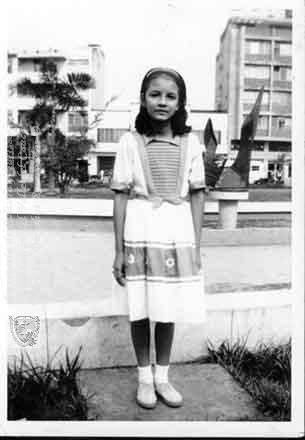 En los muros del Colegio Santa Librada, María Ofelia Burbano el día de su cumpleaños. Cali. 1965.