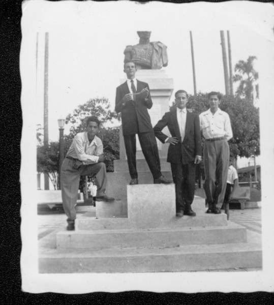 Parque principal que muestra el pedestal del busto del libertador tal como está en la actualidad. Bugalagrande. 1955