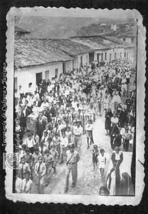 Entierro de primera clase. Calle Barrio Colombia, Ansermanuevo, 1952.