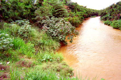 Plano Medio. La vegetación y el agua definen una línea curva que se unen en el horizonte en un mismo punto. A lado y lado del río la vegetación es abundante y frondosa.