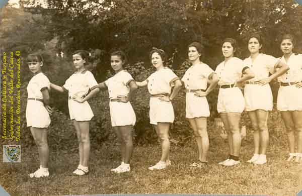 Mujeres deportistas en los trajes deportivos de los años cuarenta.