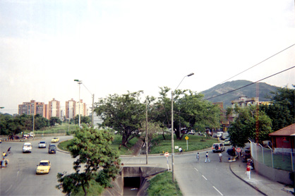 | dc.description | Se observa glorieta en entrada al barrio Siloé. Al lado derecho estación de bomberos del barrio. Vehículos y transeúntes en la vía. Al fondo edificios. Plano general. Imagen tomada desde puente peatonal. | spa |