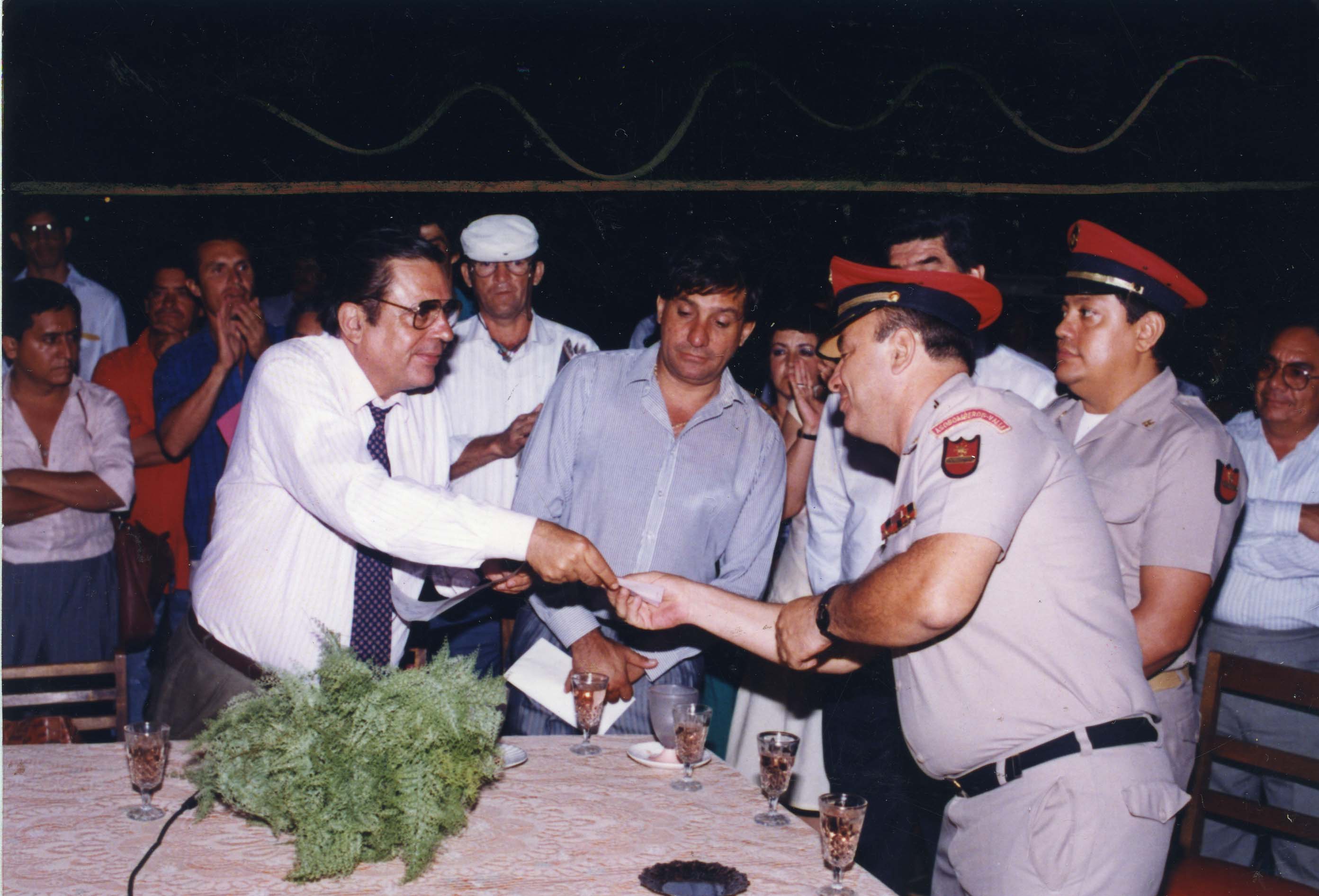 En el pie de foto dice lo siguiente: Ernesto González Caicedo, gobernador, entregó auxilios al Cuerpo de Bomberos de la ciudad, para la compra de una máquina extintora de incendios.
