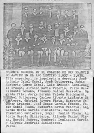 Colonia Bugueña en el Colegio de San Francisco Javier de Pasto en el año lectivo 1937-1938