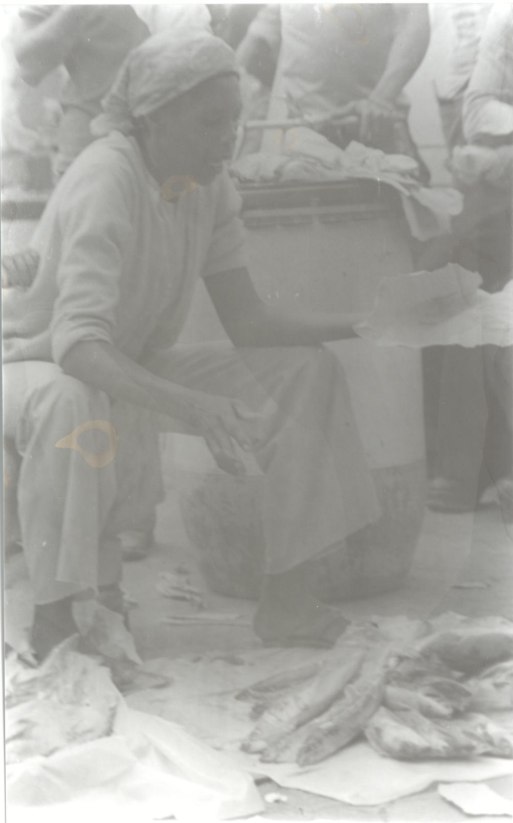 Plaza de mercado el Calvario, vendedores de pescado. Santiago de Cali, 1978.