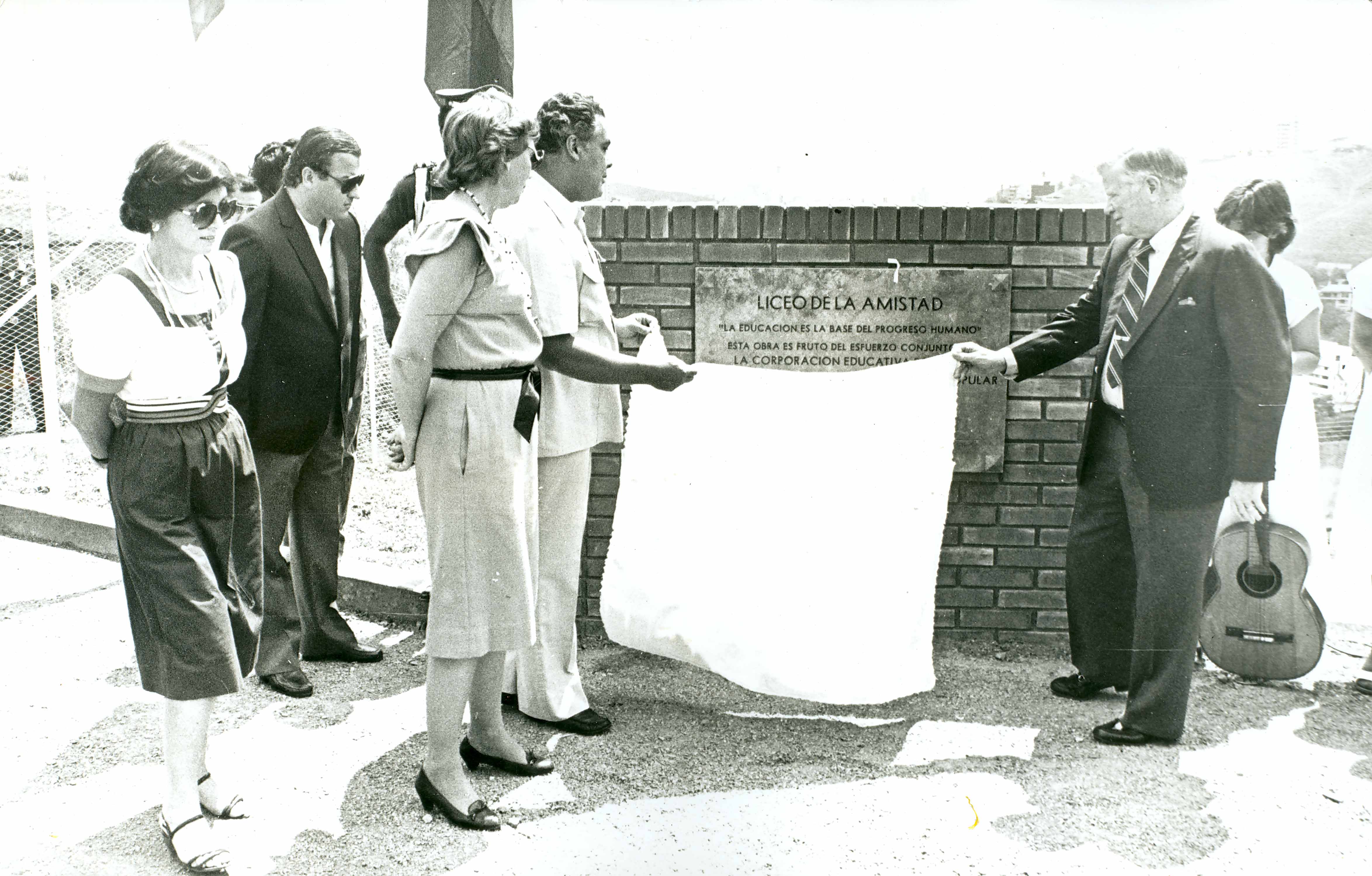 Decubrimientro de una placa durante la inauguración del liceo de la Amistad