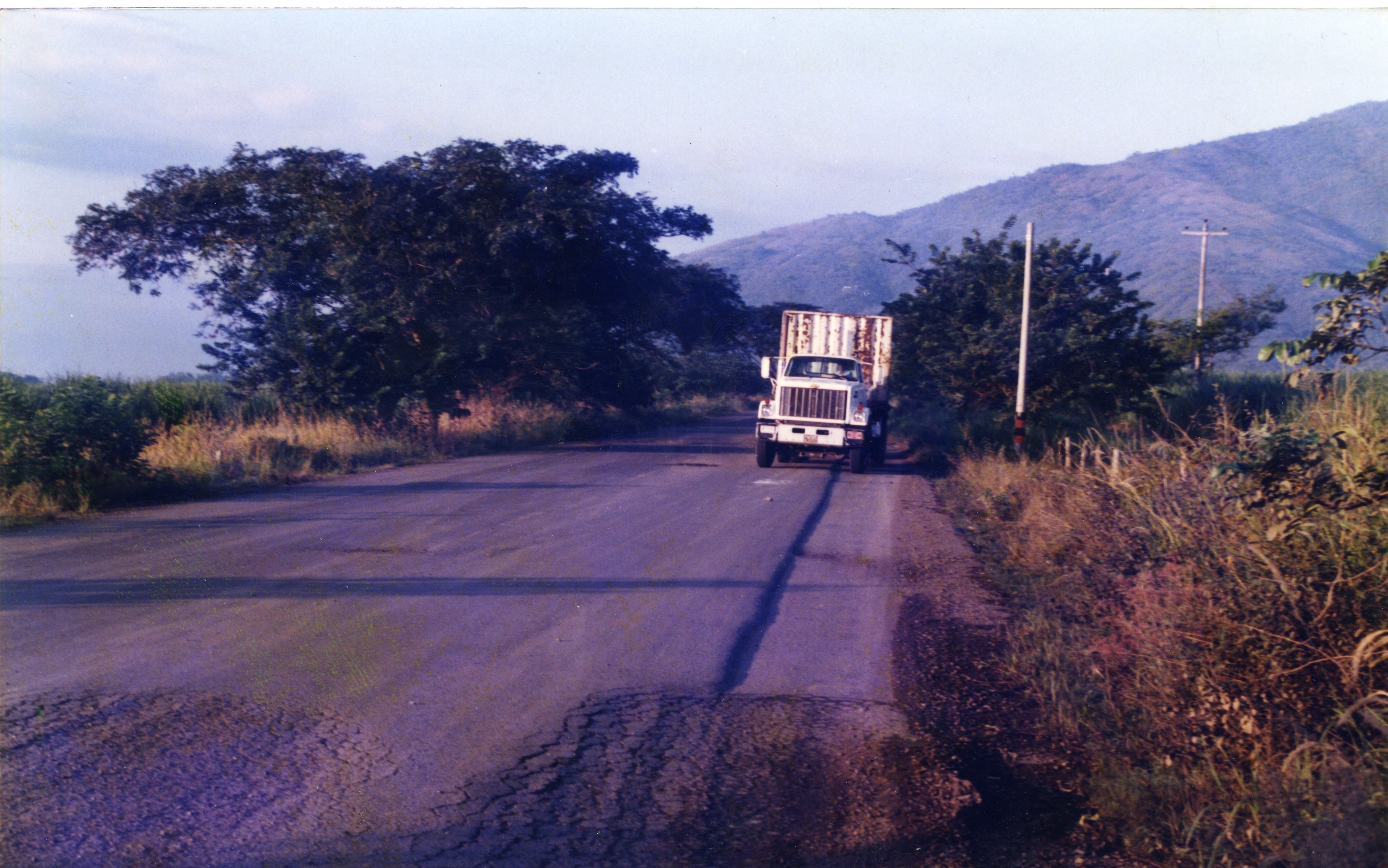 Al reverso de la fotografía se anexa recorte de prensa: " La Troncal Riofrío-. ANTE el mal estado de la vía que de este municipio conduce al corregimiento de Mediacanoa, los vehículos deben transitar en contravía para evadir los huecos, poniendo en peligro la vida de los ocupantes. ¿Quién responde por los daños de la carretera?"