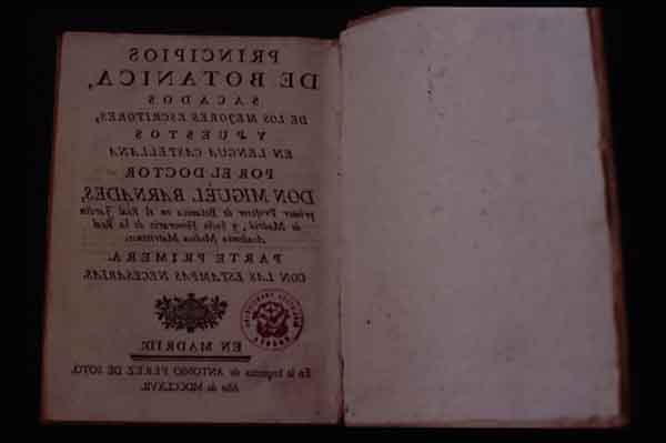 Libro Incunable "Principios de Botánica" de Miguel Barnades, 1767. Biblioteca de la Universidad del Valle. Santiago de Cali, C. 1990