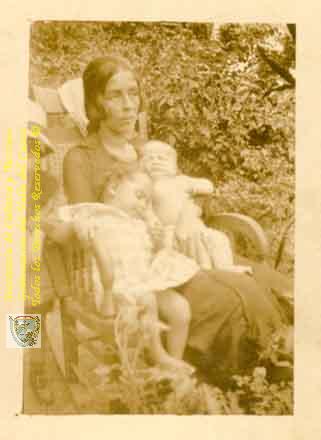Ismaelina de Victoria Valderruten con sus hijos Hernán y Stelia Victoria, en el patio de su casa