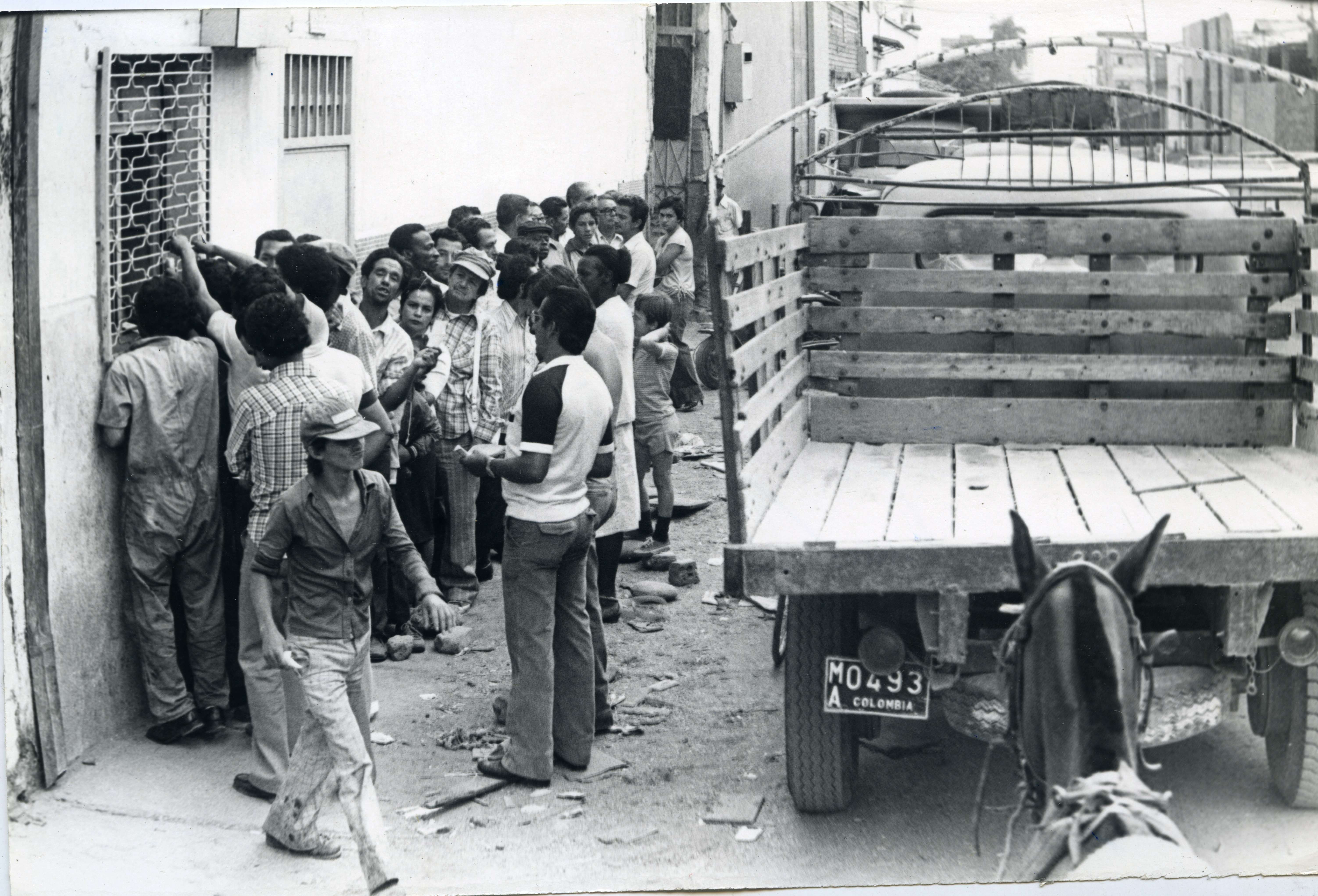 Vista de larga fila para comprar cemento