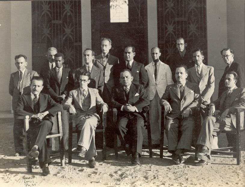 Miembros del Consejo Municipal. Entre sus integrantes: Antonio José Camacho (centro), Sr. Payan(izquierda) y Nicolás Ramos Hidalgo(derecha). Santiago de Cali, fecha aproximada, 1940.