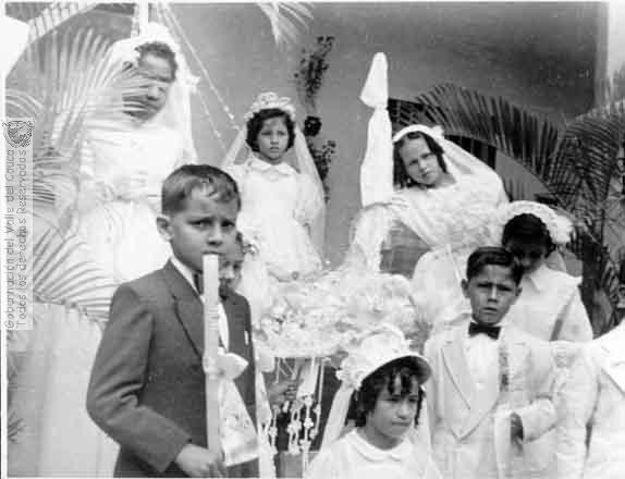 Procesión del Sagrado Corazón de Jesús y celebraciones de primeras comuniones. Pradera. C. 1970.