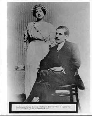 Hernando Carvajal Borrero y Eugenia Sinisterra Carvajal, el día de su matrimonio. Santiago de Cali, 1914.