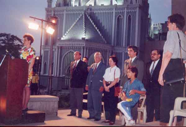 Inauguración del parque de los poetas, preside la ceremonia el Gobernador Mauricio Guzmán Cuevas y el doctor Héctor Fabio Varela de la Academia de Historia del Valle. Santiago de Cali, C. 1995.
