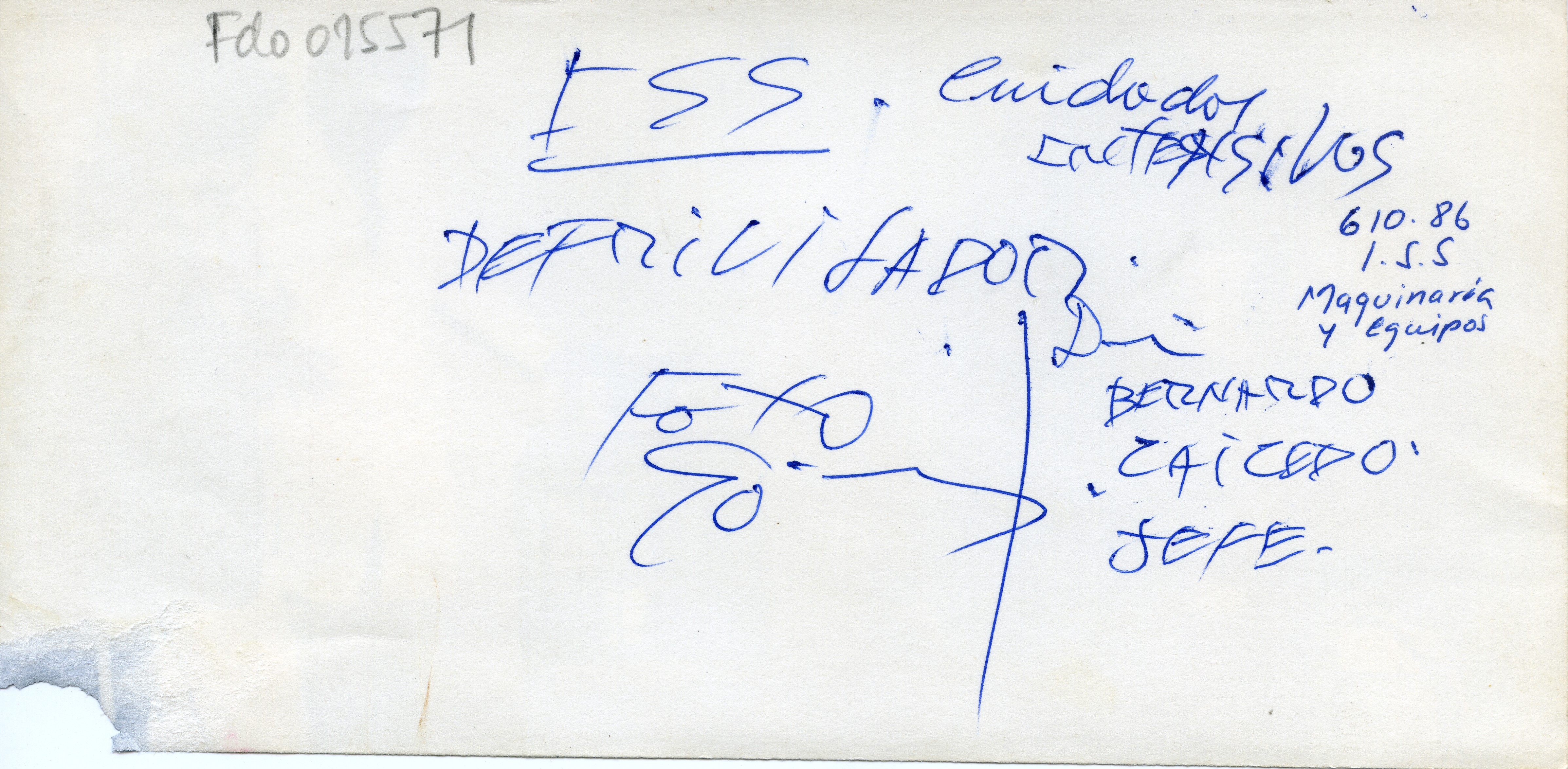 Interior de una Sala de cuidados intensivos, se observa dos hombres hablando, distintos equipos clínicos; entre estos un desfibrilador.
