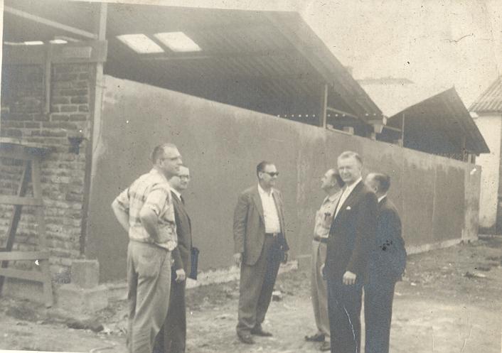 Técnicos del Sceca, entre ellos Tenorio y Operman, en el Instituto Antonio José Camacho. Este proyecto tenía como objetivo financiar y estimular la educación industrial en la ciudad, para promover la mano de obra calificada, que Cali necesitaba en su proceso de modernización e industrialización. Santiago de Cali, fecha aproximada, 1961.
