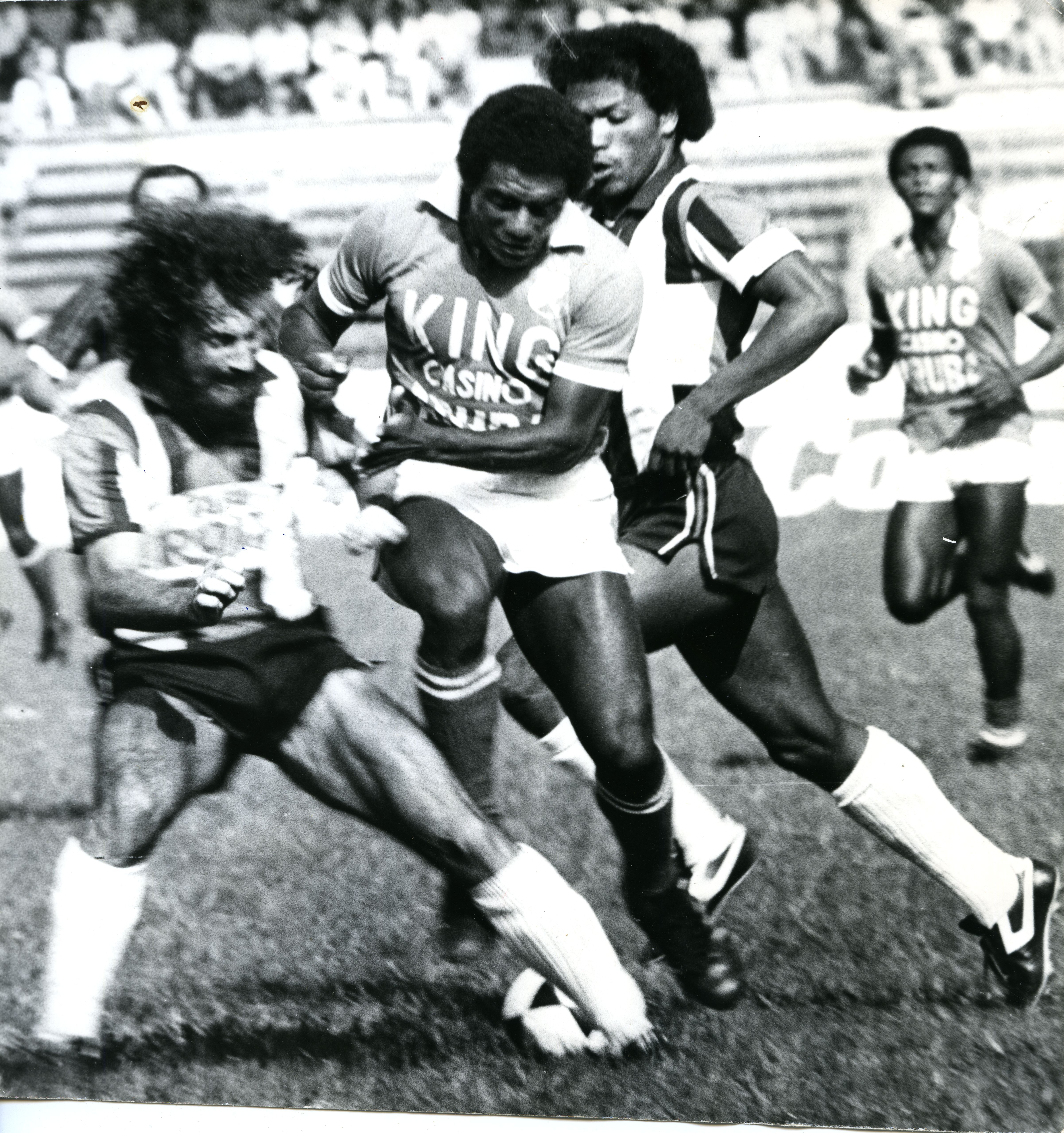 Foto cuerpo completo Gilmar Aponzá disputa el balón