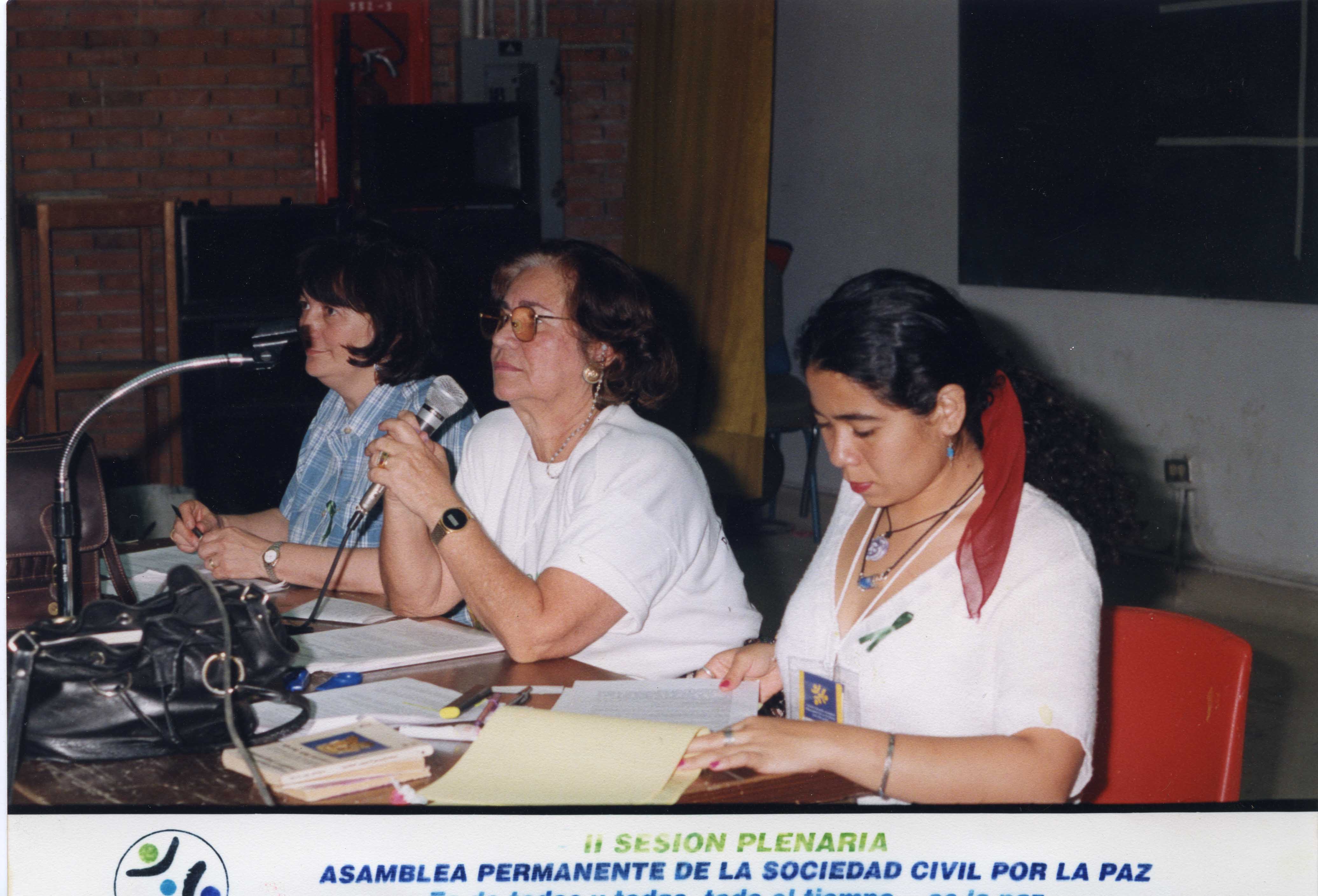 Un total de 61 mujeres participaronen la Comisión Mujer y Paz, aparecen en la foto Sara Gómez, la moderadora, centro; María Teresa Arizabaleta y Sandra Florentina Ortiz, relatoras. El Archivo del Patrimonio Fotográfico y Fílmico del Valle del Cauca es responsabilidad de la Biblioteca Departamental del Valle Jorge Garcés Borrero, por convenio de cooperación suscrito con la Secretaria del Cultura Departamental, con el fin de aunar esfuerzos para su conservación, preservación y divulgación del Archivo entre la comunidad Vallecaucana, especialmente entre los estudiantes e investigadores que visitan la Biblioteca, propiciando el su uso y consulta permanente. La universidad Icesi es un colaborador en el proceso de difusión, facilitando la tecnología que permite la consulta de las imágenes.