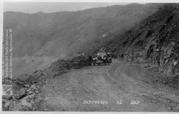 Foto Salazar (1927). Construcción de la Carretera Simón Bolívar conocida popularmente como Carretera al Mar & 402629. SANTIAGO DE CALI: Biblioteca Departamental Jorge Garces Borrero.